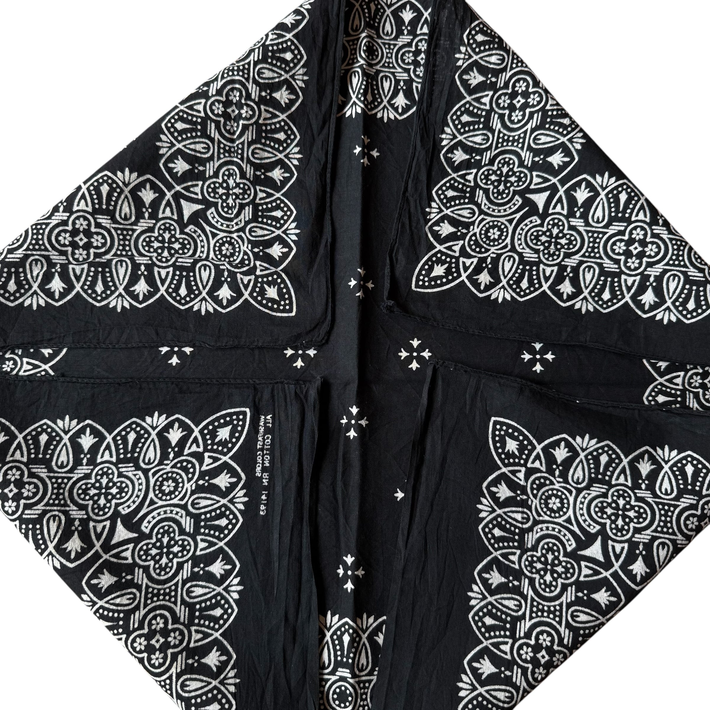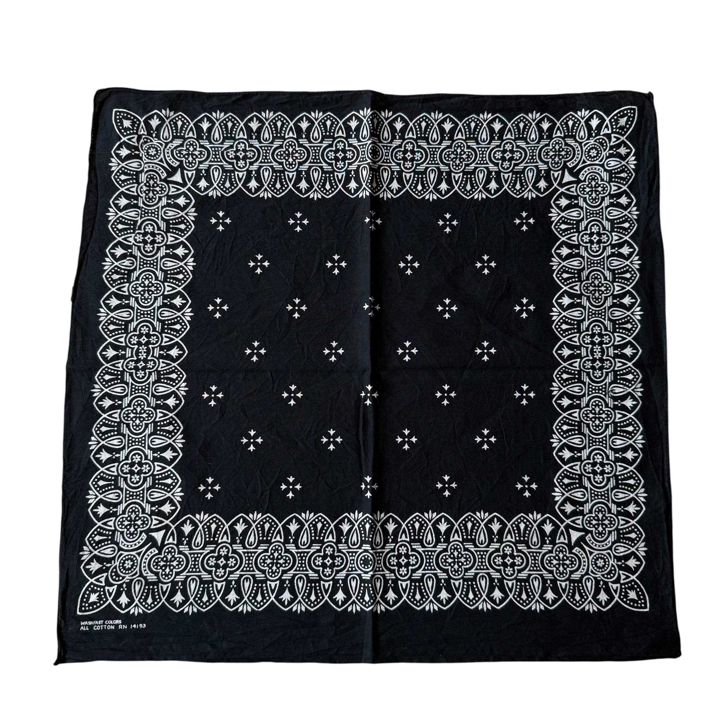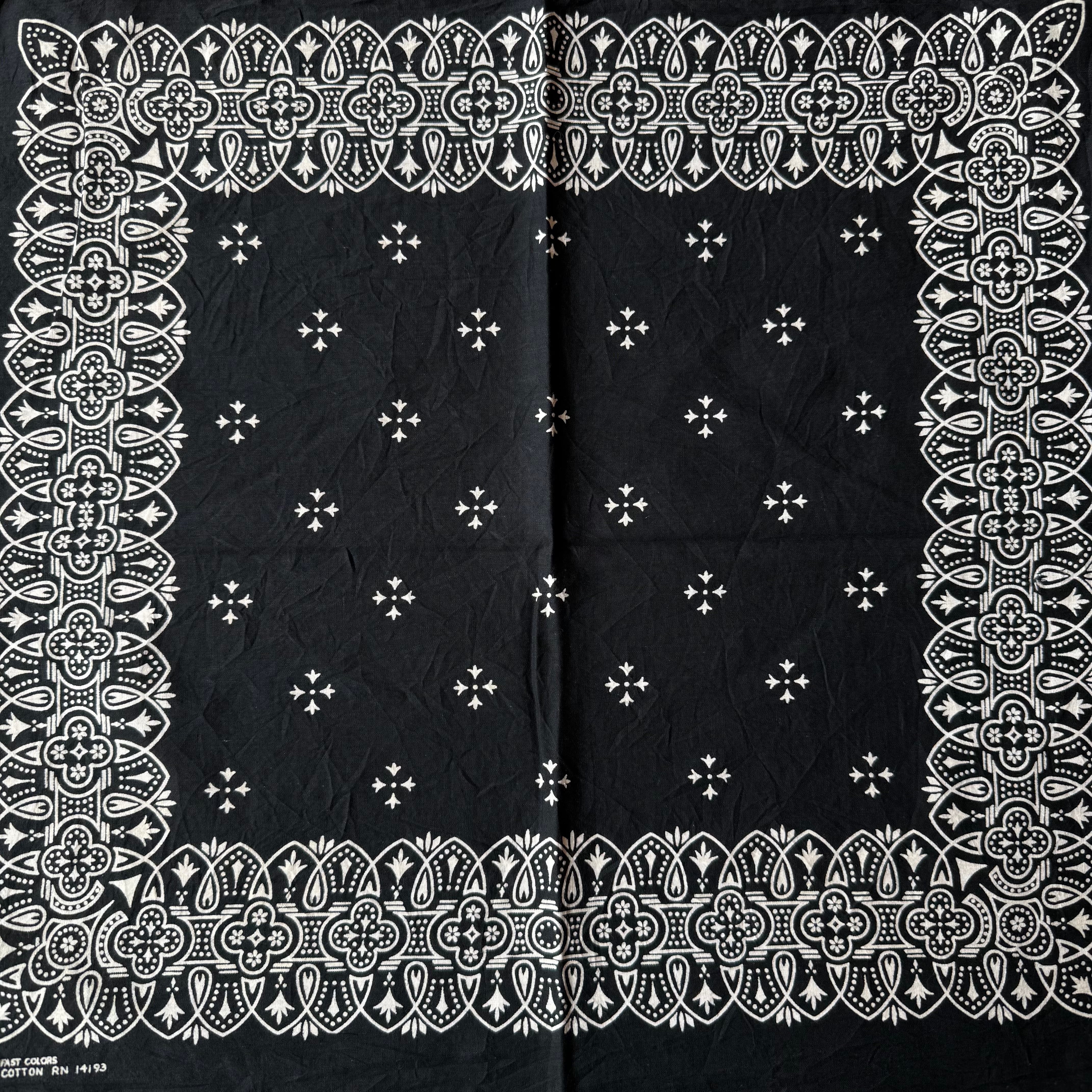 60s 70s ブラック アイアンクロス柄 ビンテージ バンダナ USA