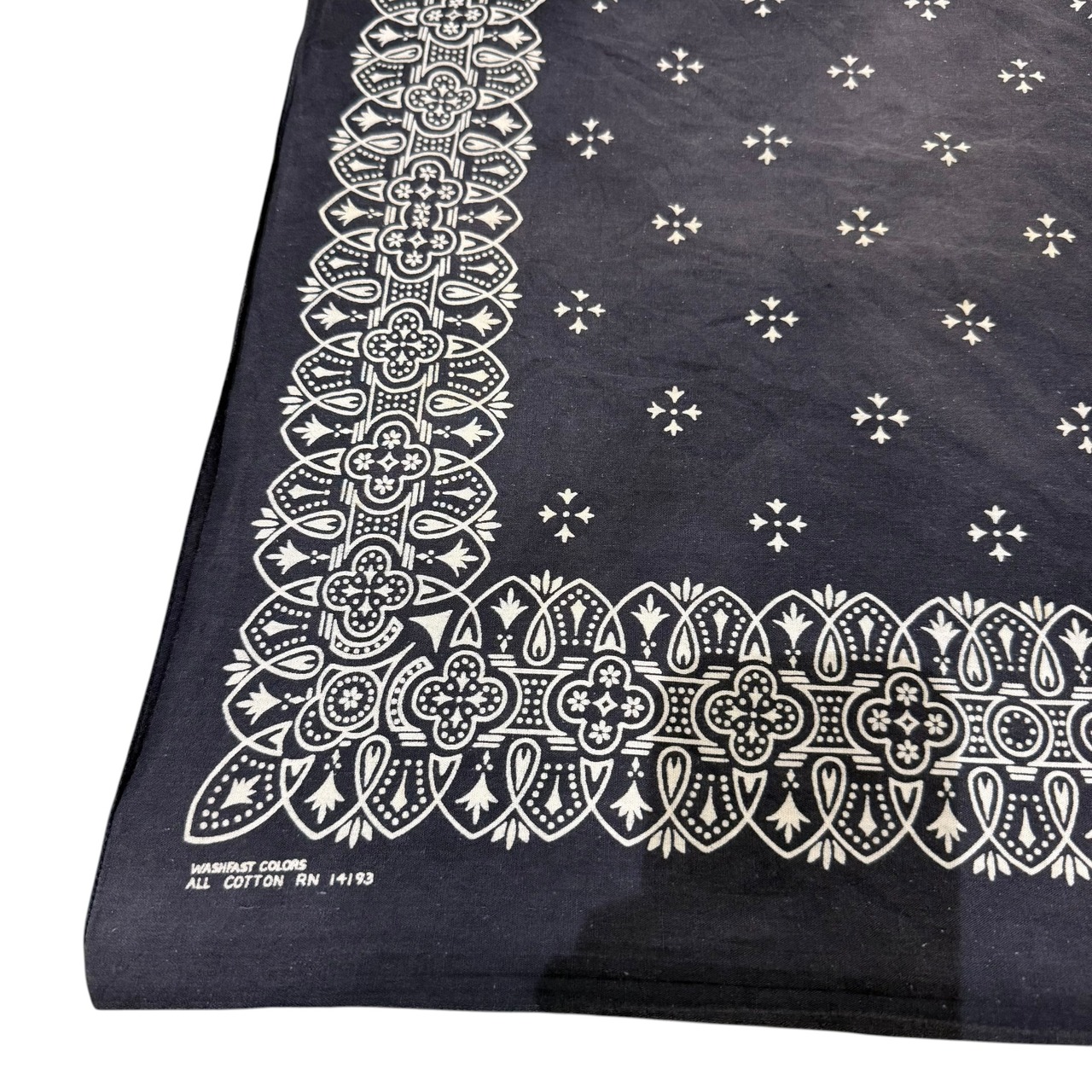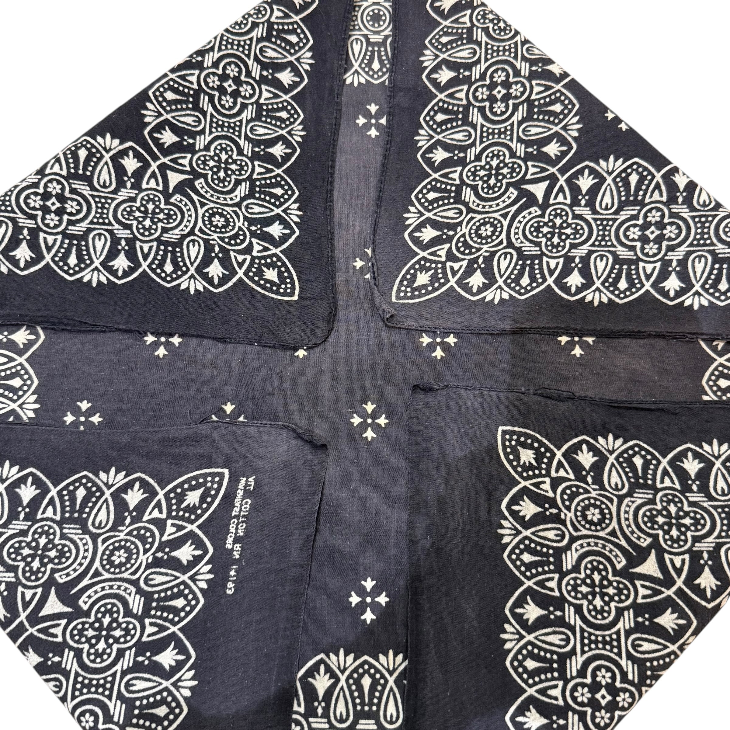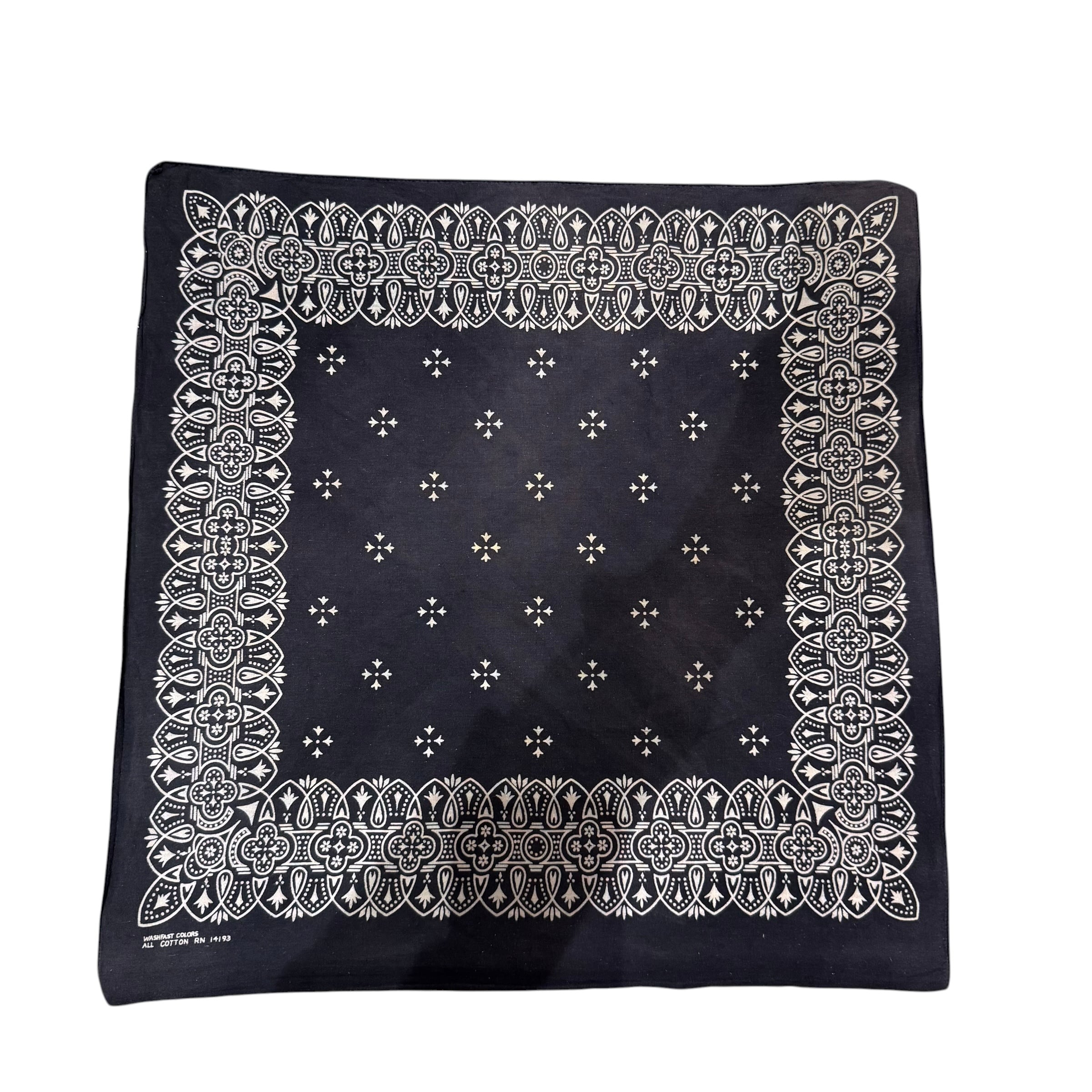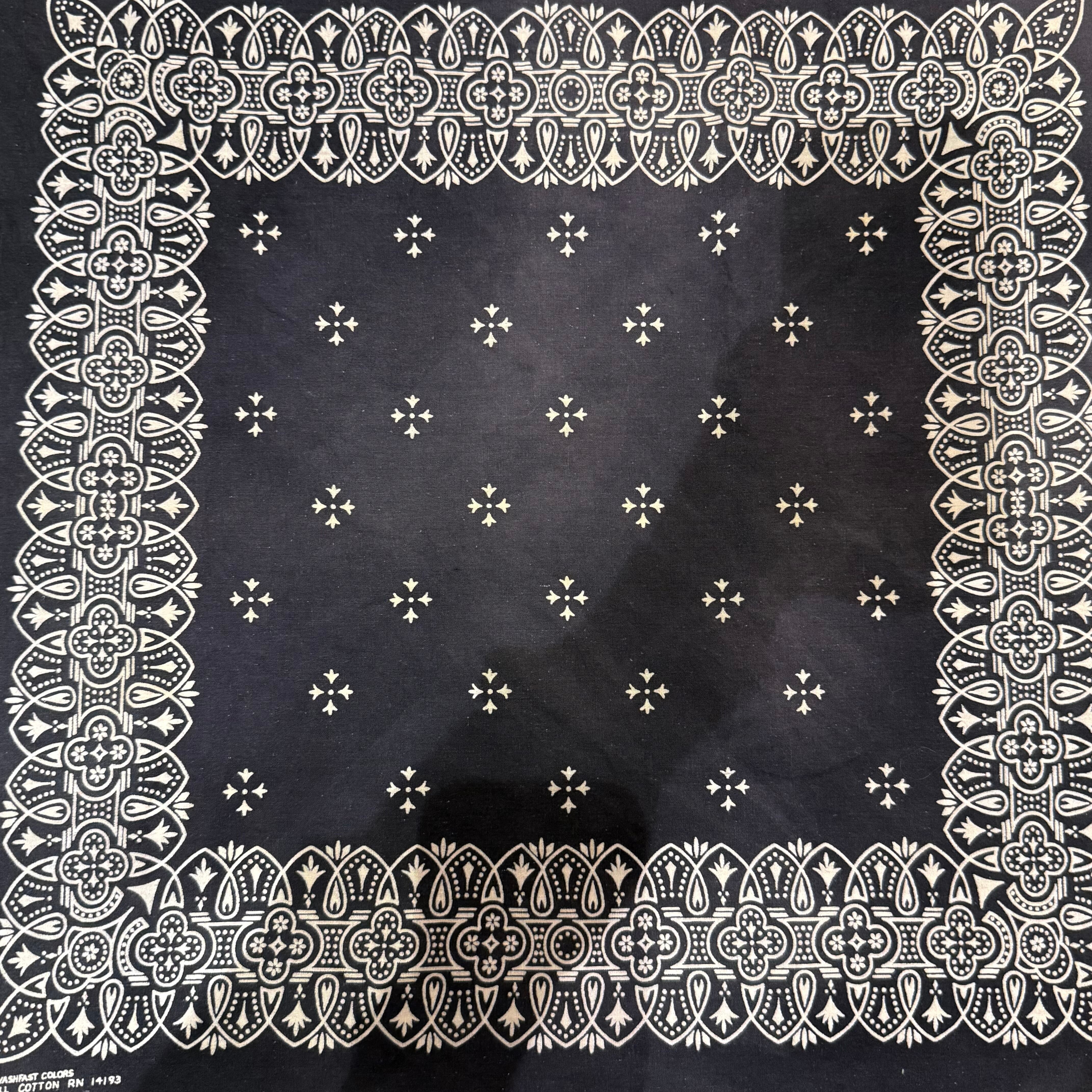 60s 70s 黒アイアンクロス柄 ビンテージ バンダナ USA